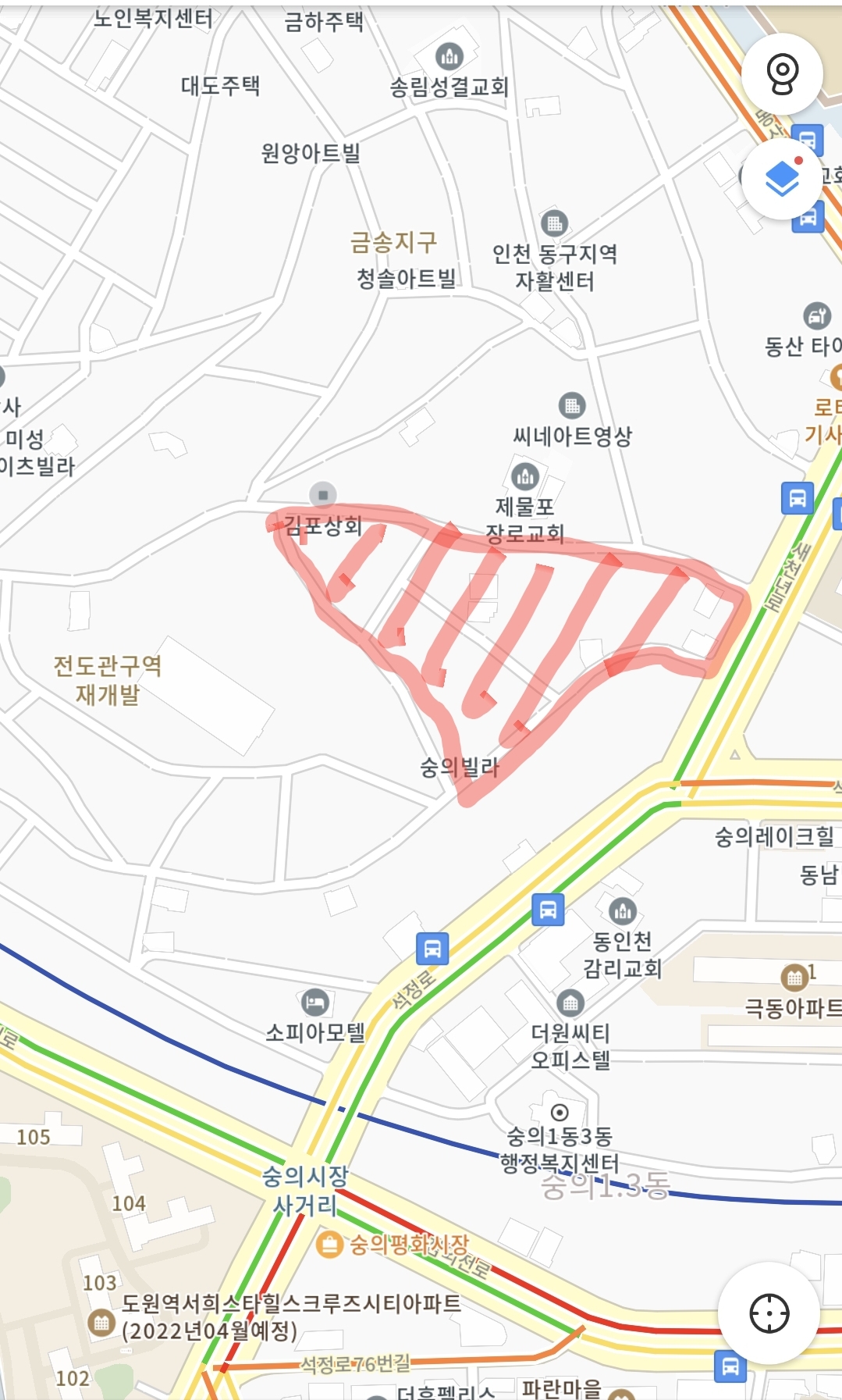 펜스에 가림천을 먼저 치는곳이 아무래도 먼저 철거하려는 곳인가 봅니다. 위에 천을치고 있는 곳이 아래 지도 부근입니다.