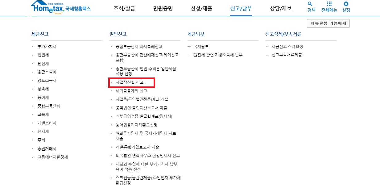 홈택스에서 사업장 현황신고하기