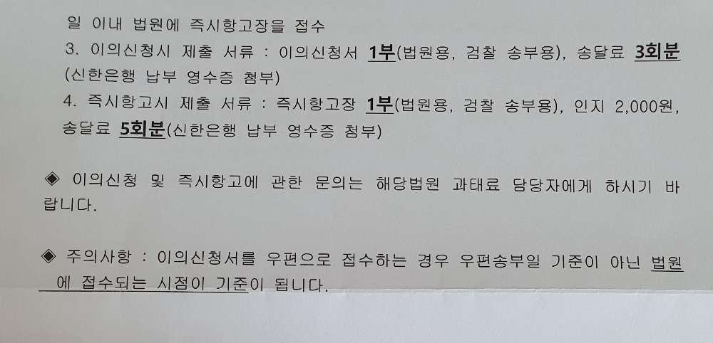 참고로 만약 이 과태료에 대해서 나는 이의가 있다 하면