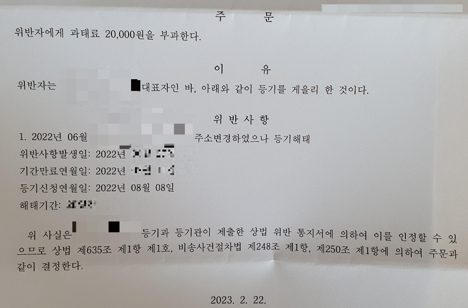 14일 내 신청해야하는 의무 기간이 있는 줄 몰랐다... 그렇게 과태료도 있는 줄 모르고 등기비가 아까워서 나중에 다른거 할 일 있을때 같이 해야지 생각하고 ㅜㅜ