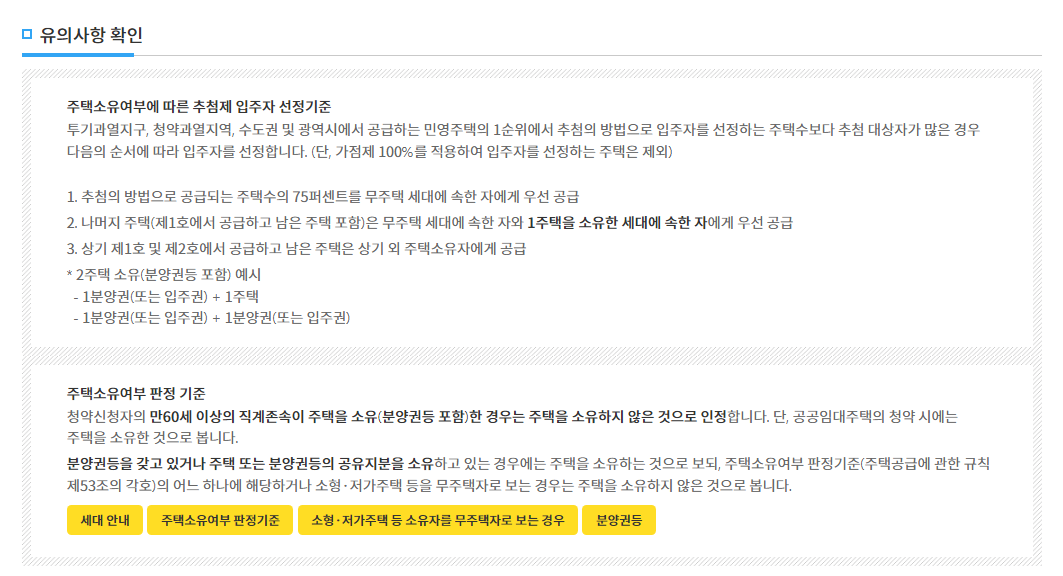 * 주택소유여부 판정기준의 세부사항은 청약제도안내 > 주택청약 용어설명 > 주택소유여부 판정기준 참고