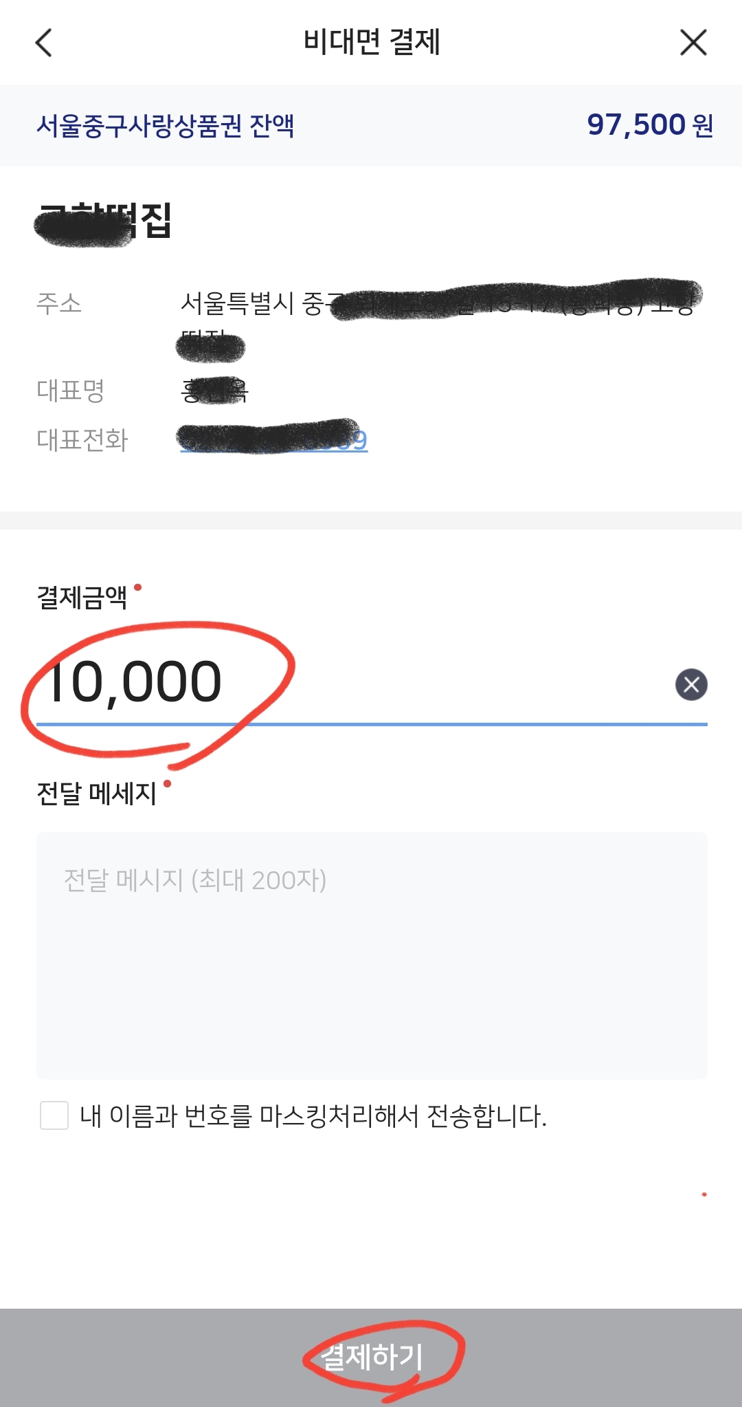 비대면 결제 방법은 위와 같아요~~^^