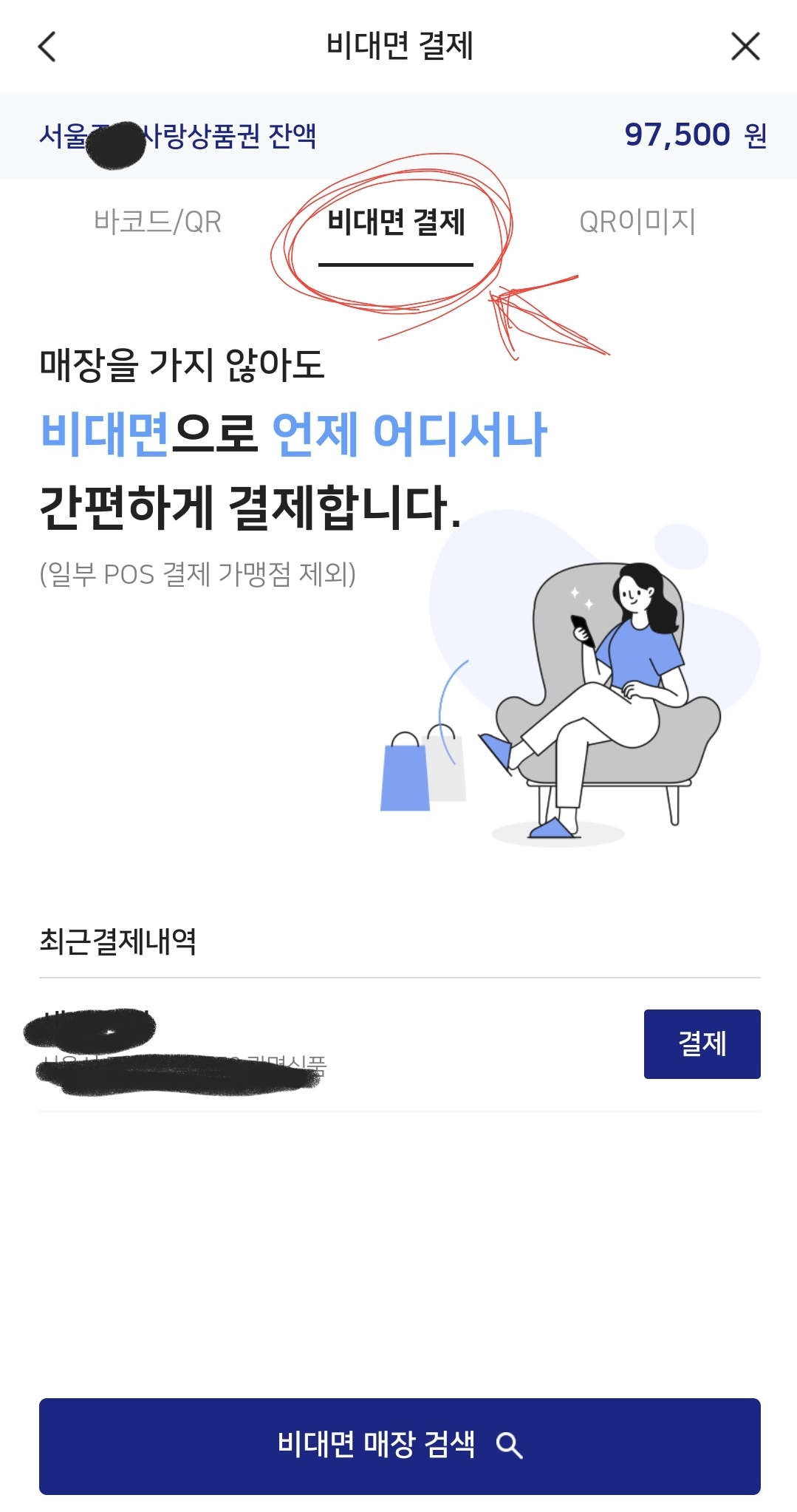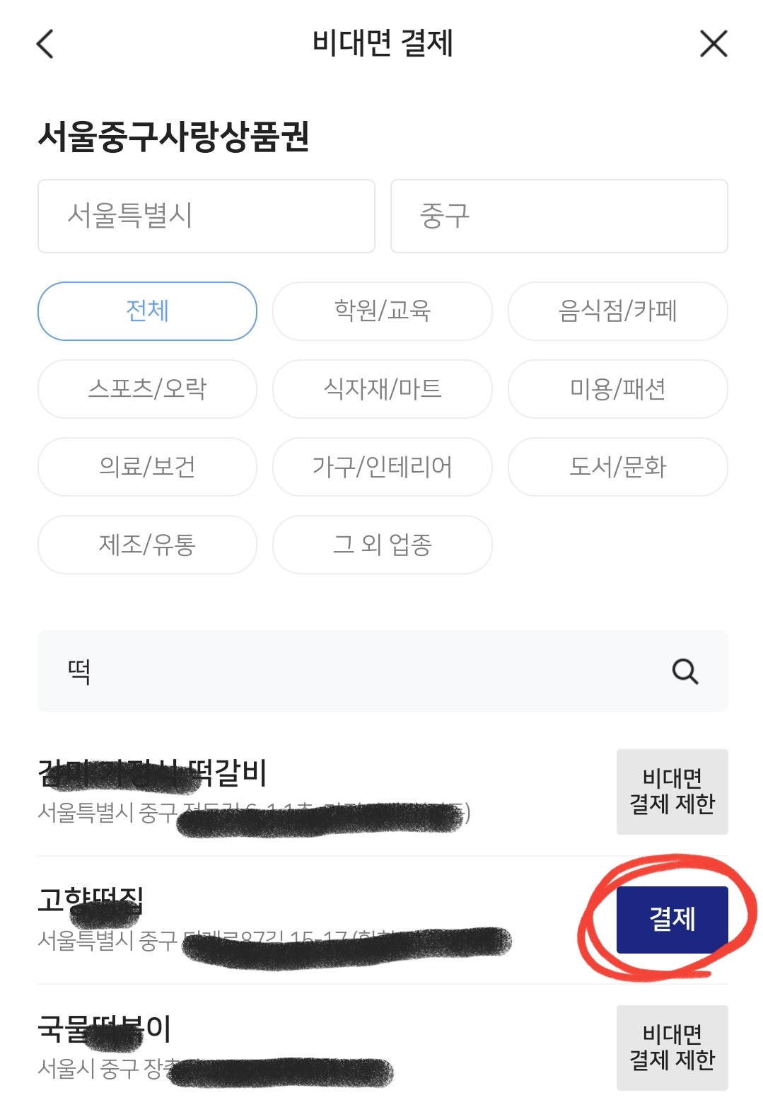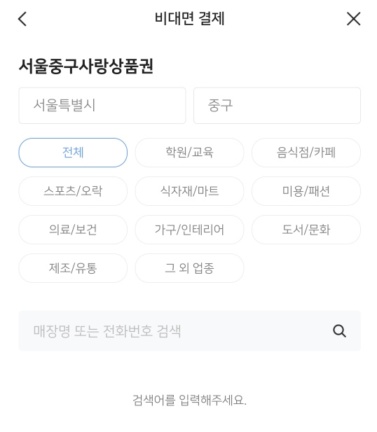 하지만 바코드가 없을때 그냥 상호명으로 검색을 해서 결제가 가능한 것입니다.